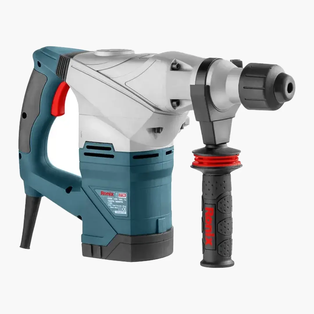 | متعلقات | ظرف گریس، میله تنظیم عمق،آچار، یک جفت زغال اضافه، دسته جانبی طراحی شده توسط رونیکس و کیف حامل متهها شامل: یک مته SDS-PLUS 8×150 یک مته SDS-PLUS 10×150 یک مته SDS-PLUS 12×150 یک مته نوک تیز SDS-PLUS 14×250 یک مته نوک تخت SDS-PLUS 14×250 |