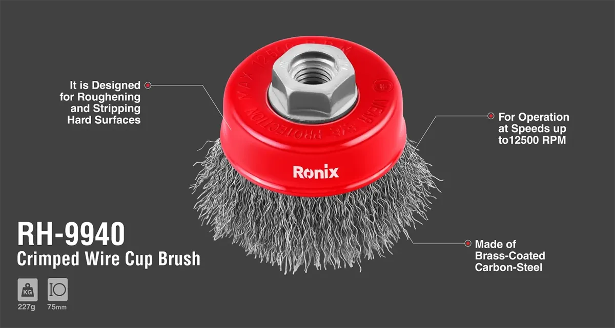 برای انتخاب دقیق و اصولی یک ابزار ساینده، بررسی مشخصات فنی آن کاملاً الزامی است. فرچه سیمی کاسه ای رونیکس مدل RH-9940 دارای ویژگیهای مهندسیشدهای است که آن را از سایر محصولات مشابه بازار کاملاً متمایز میکند.