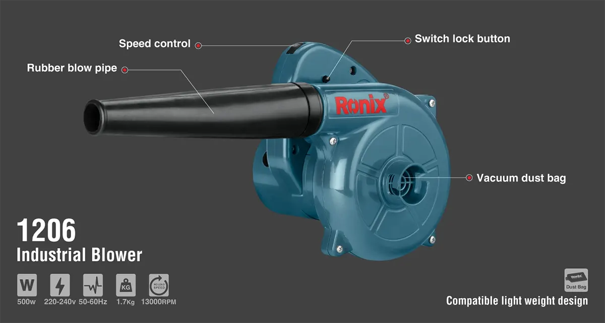 اگر به دنبال ابزاری هستید که هم گرد و غبار را با قدرت از بین ببرد و هم در نقش یک جاروبرقی کوچک ظاهر شود، بلوور رونیکس 1206 دقیقا همان چیزی است که نیاز دارید. گرد و غبار دشمن اصلی قطعات الکترونیکی و تجهیزات کارگاهی است؛ انباشته شدن خاک درون کیس کامپیوتر، بردهای الکتریکی یا ابزارآلات، باعث افزایش دما و کاهش عمر مفید آنها میشود. بلوور (دمنده و مکنده) رونیکس مدل 1206 با طراحی ارگونومیک و موتور قدرتمند خود، راهکاری حرفهای، سریع و اقتصادی برای حل این مشکل است.