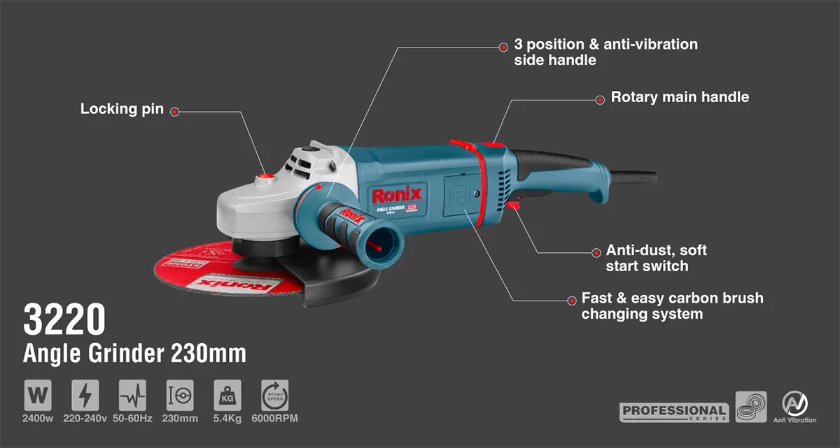 بررسی و خرید فرز سنگبری صنعتی رونیکس مدل 3220 (2400 وات)