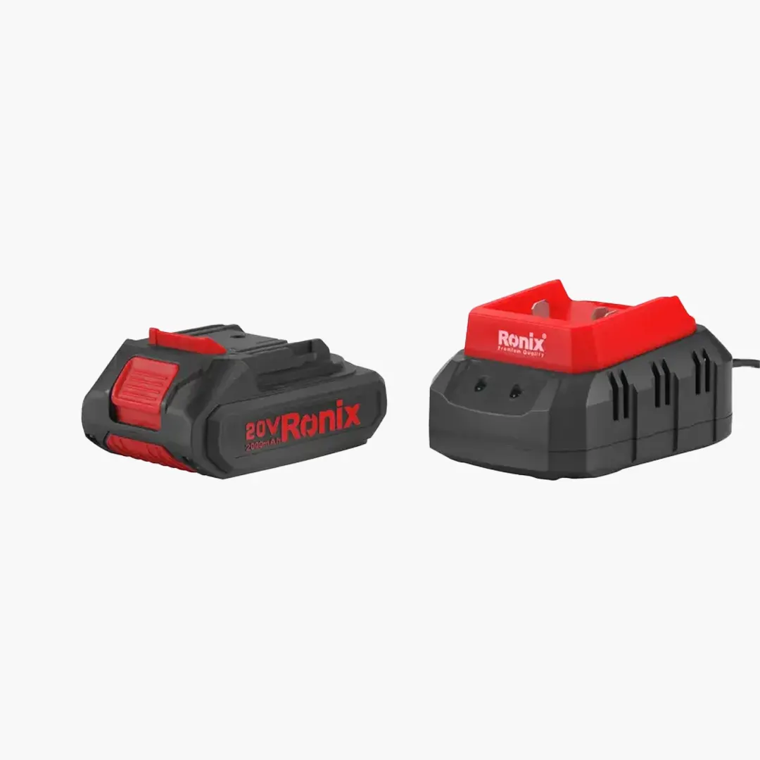 این اره عمودبر به همراه دو عدد باتری 20 ولت با ظرفیت 2 آمپر ساعت عرضه میشود. وجود دو باتری و یک فست شارژر (Fast Charger) به این معنی است که شما میتوانید در حین استفاده از یک باتری، باتری دیگر را شارژ کنید و عملاً وقفه کاری نداشته باشید. باتریهای سری 86 رونیکس با سایر ابزارهای این سری نیز سازگار هستند که یک مزیت بزرگ اقتصادی محسوب میشود.