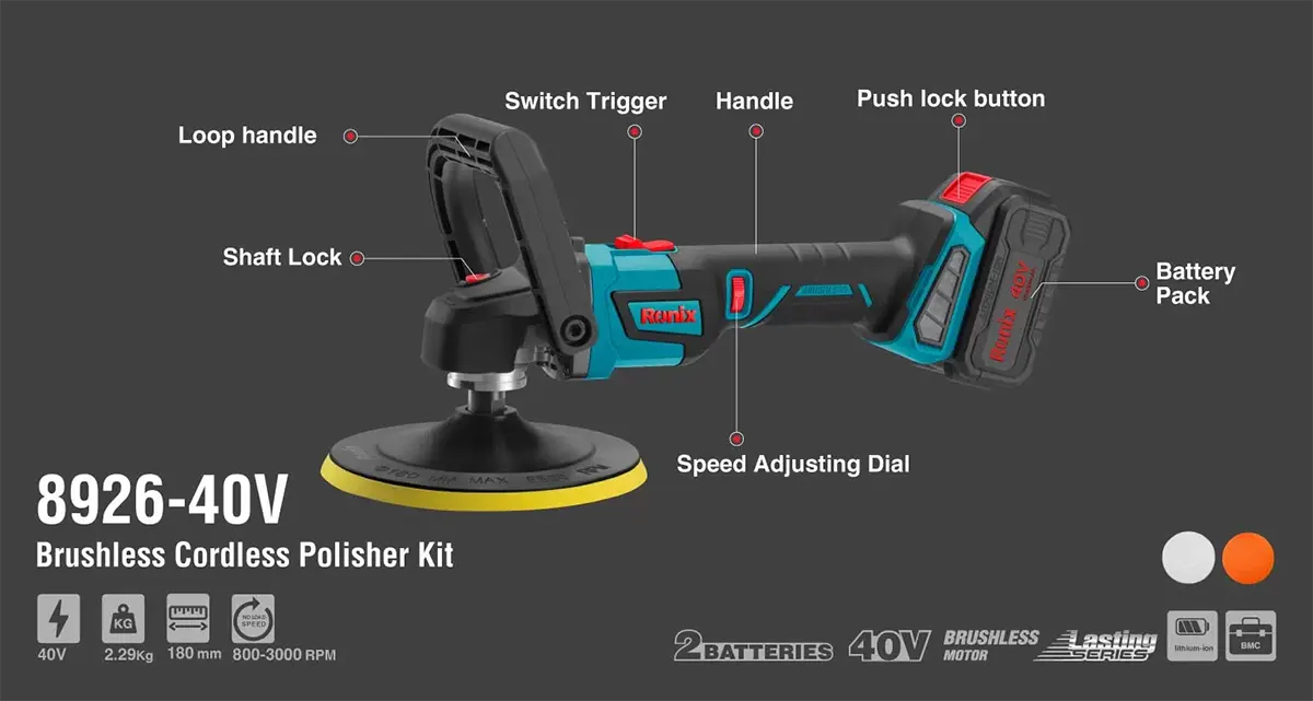 رونیکس به عنوان یکی از برندهای پیشرو در بازار ابزار ایران، با معرفی مدل 8926 گامی بلند در جهت مدرنسازی تجهیزات کارگاهی برداشته است. پولیش شارژی رونیکس 8926 یک ابزار قدرتمند است که انرژی خود را از یک باتری 40 ولت تامین میکند. این ولتاژ بالا تضمین میکند که دستگاه در حین لایهبرداریهای سنگین یا پرداختهای نهایی دچار افت توان نشود. این محصول برای صافکاران، نقاشان خودرو و متخصصان دیتیلینگ که نیاز به جابجایی مداوم دور خودرو دارند، طراحی شده است.