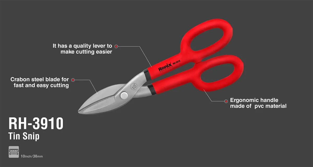 برند رونیکس همواره در تولید ابزارآلات دستی به دوام و کارایی توجه ویژهای دارد و مدل RH-3910 نیز به خوبی این فلسفه را بازتاب میدهد. این قیچی در دسته قیچیهای مستقیم بر قرار میگیرد؛ به این معنا که فکهای آن برای ایجاد برشهای صاف، طولانی و مستقیم روی سطوح فلزی بهینهسازی شدهاند. طول ۱۰ اینچی این ابزار (حدود ۲۵ سانتیمتر) اهرم مناسبی را برای اعمال نیرو فراهم میکند و در عین حال ابعاد آن به گونهای است که به راحتی در کیف یا جعبه ابزار قرار میگیرد.