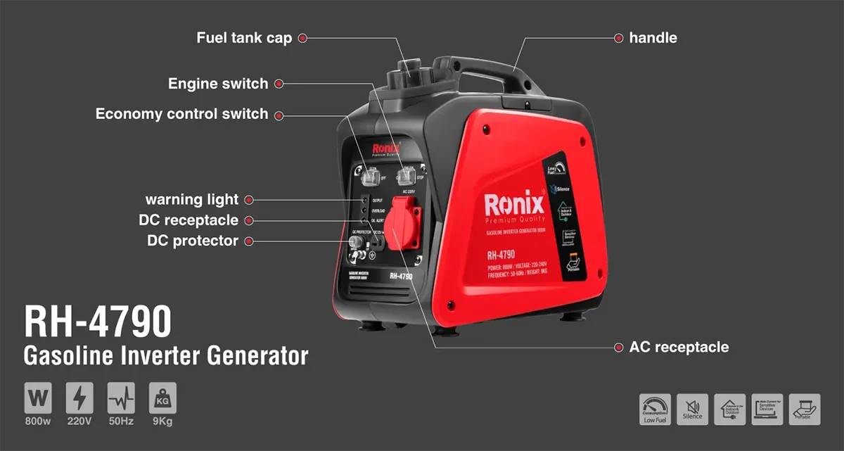 بررسی و خرید موتور برق بنزینی سایلنت 800 وات رونیکس مدل RH-4790
